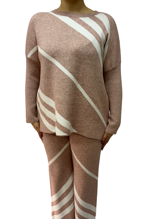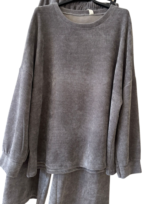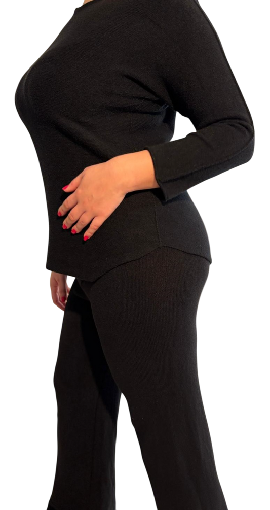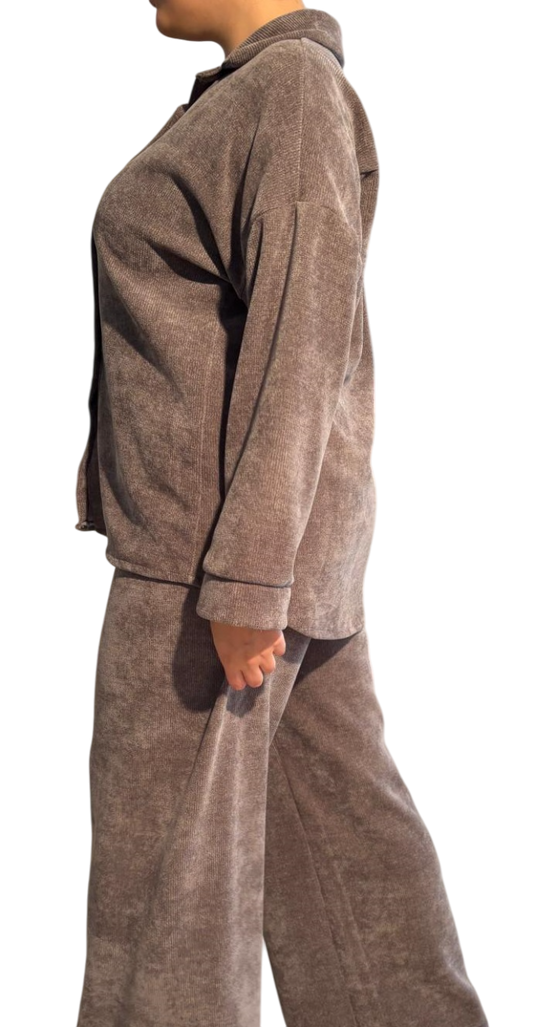 Damen-Hosenanzug aus Cordimitat-Strickstoff mit Hemd und langen Ärmeln