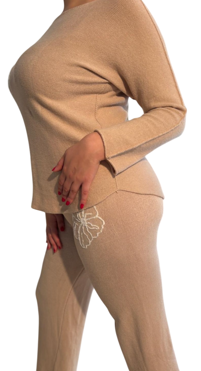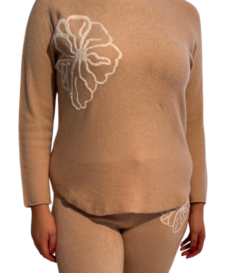 Damenanzug aus weichem Stoff mit Flockblumen