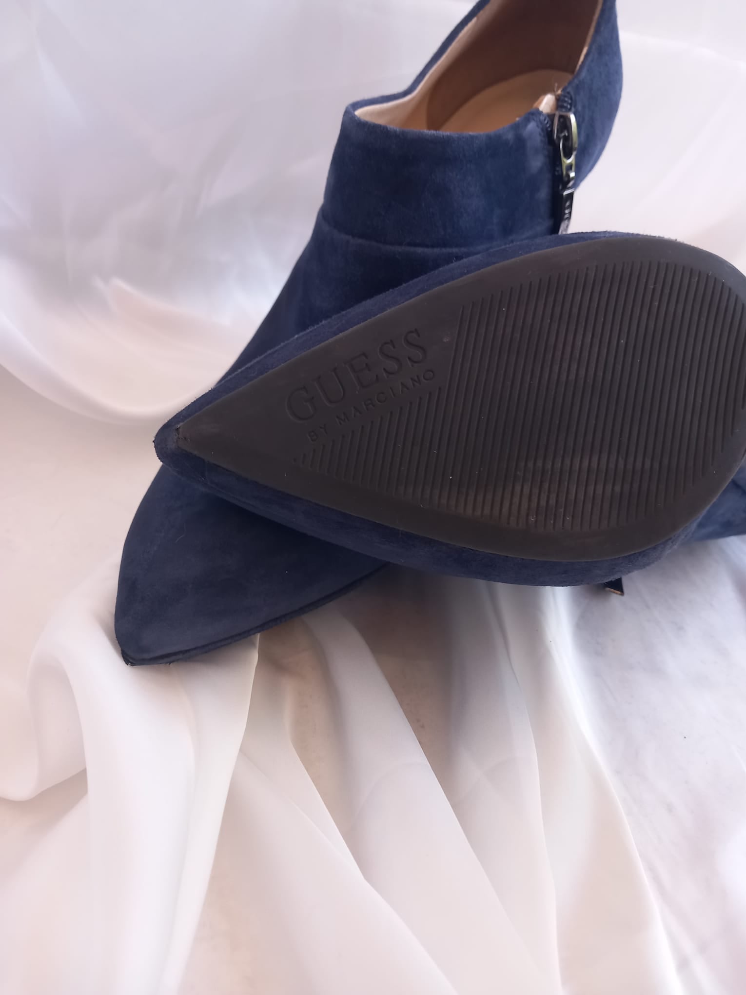 Guess Stivaletti in camoscio bluette. Tacco a spillo. Internamente chiusura con zip.